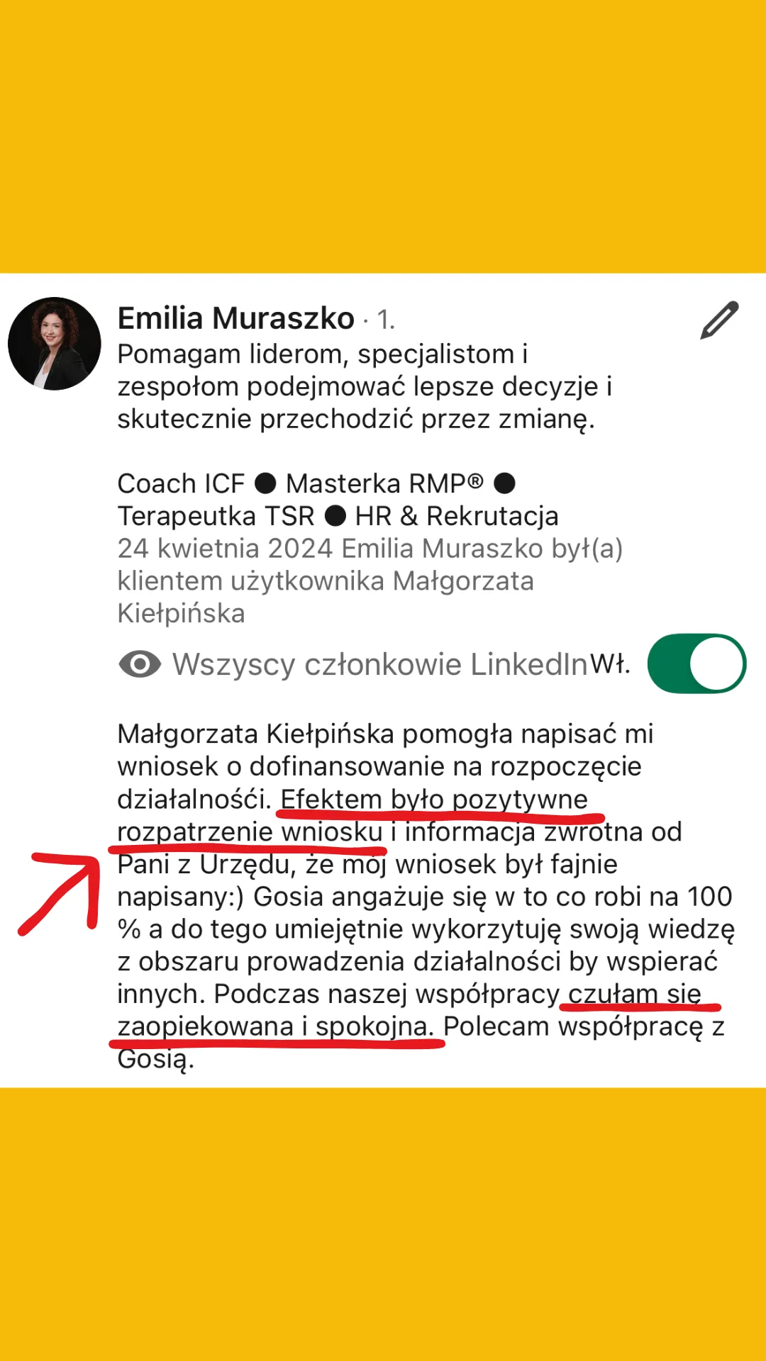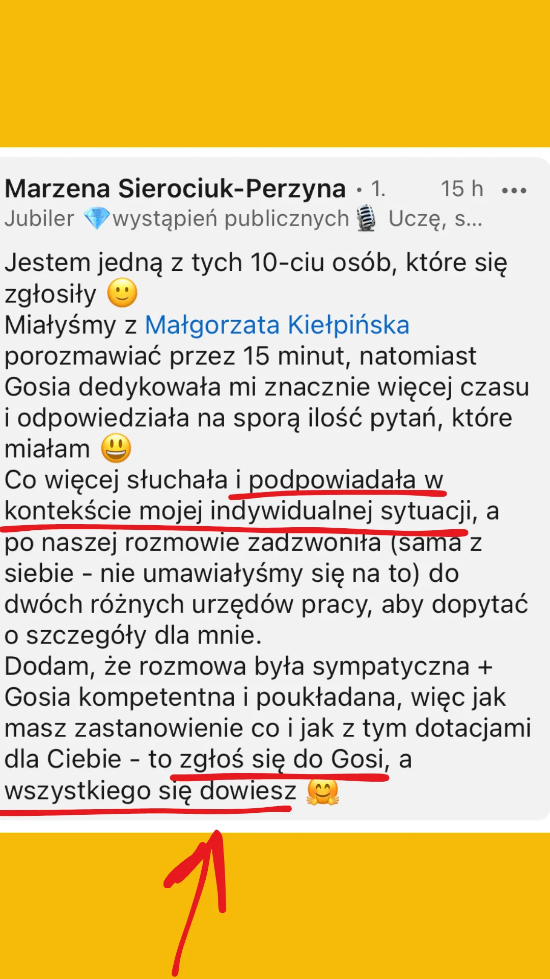Małgorzata Kiełpińska nie oferuje programów „szybkiego wzbogacania się”, okazji biznesowych ani systemów generowania dochodu.